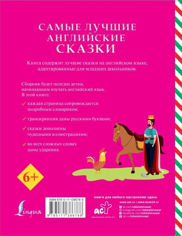 Книга содержит лучшие сказки на английском языке, адаптированные для младших школьников, начинающих изучать английский язык. На каждой странице дан словарь с переводом всех слов, а также транскрипции русскими буквами.