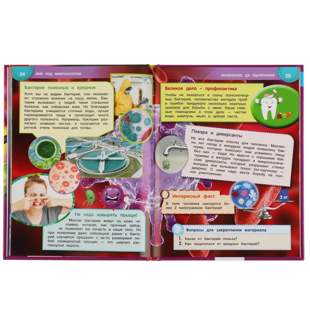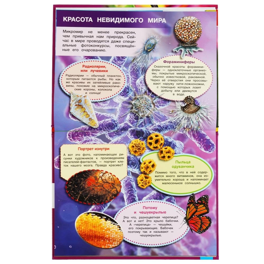 Эта занимательная энциклопедия погрузит юного читателя в удивительный мир, познакомиться с которым можно только под многократным увеличением в микроскопе. Яркие фотографии и удивительные факты увлекут ребёнка и помогут ему быстро, эффективно и с удовольствием усвоить новую информацию.