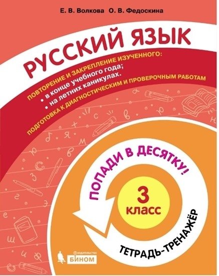Тетрадь-тренажёр «Попади в десятку!» по русскому языку предназначена для самостоятельной работы учащихся 3 класса. Структура тетради, задания и вопросы, система проверки ответов, правила подсчёта баллов и анализ результатов обеспечивают именно самостоятельную работу ребёнка. Задача тетради — не просто дать возможность вспомнить и отработать изученный материал, но и сделать его востребованным в повседневной жизни школьника. Игровая форма работы мотивирует ребёнка продолжать выполнять задания (желание набрать больше баллов), развивает умение применять свои знания в нестандартных ситуациях, что является одним из шагов к успешному обучению в школе. Работа по тетради позволит проверить знания по русскому языку. В тетрадь-тренажер включены основные темы по русскому языку для начальной школы, а также интересные задания по фонетике, графике, орфографии, пунктуации; вопросы о значении и составе слов, упражнения на знание частей речи. Пособие могут использовать как родители, так и учителя для организации самостоятельной работы детей дома, индивидуальных занятий с обучающимися в течение учебного года, подготовки к ВПР, итогового обобщения изученного материала, проведения контрольно-диагностических работа. В пособии есть задания базового и повышенного уровня сложности, выполнение которых направлено на реализацию ФГОС НОО.