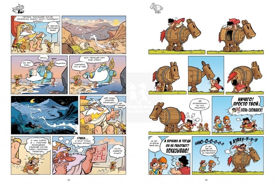 В этом томе, который уже четвертый по счету, главный сюжет разворачивается вокруг Троянской войны. В забавных скетчах показаны события, которые привели к противостоянию между греками и троянцами. Но авторы не забывают и своих излюбленных героев. Какие отговорки сможет придумать Геракл, чтобы опять не совершать подвиг или что еще сделает Таврик, чтобы вывести Зевса из себя (не нарочно, конечно!). Сможет ли Одиссей отправиться в свое плавание? А получится ли у Зевса самому подшутить над мифятами и что из этого выйдет? Эти и другие приключения Мифят оценят все любители комиксов.