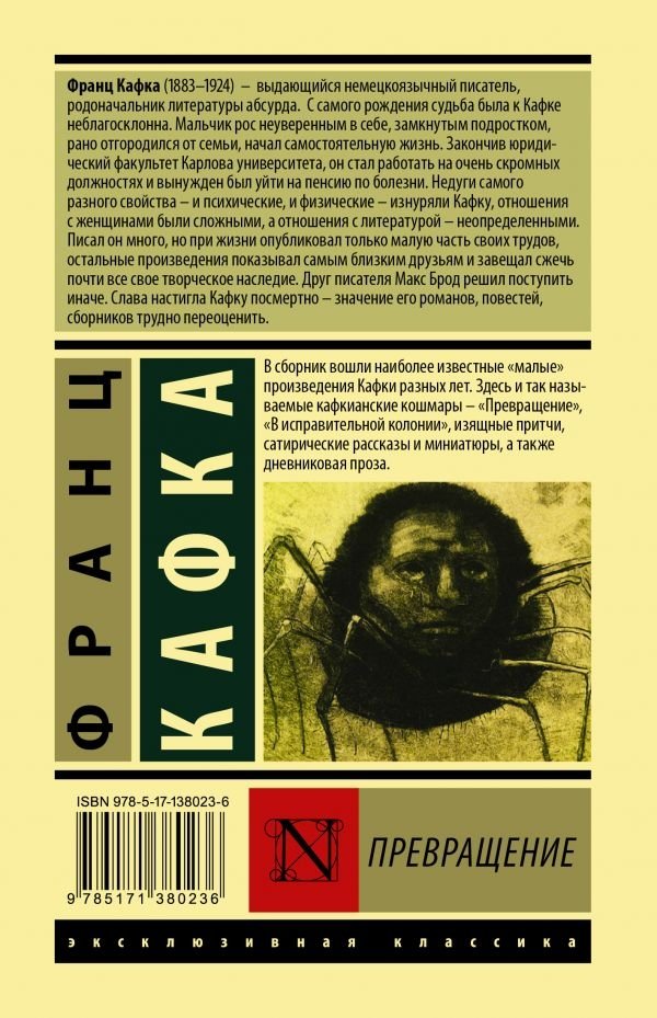 В сборник вошли наиболее известные «малые» произведения Кафки разных лет. Здесь и так называемые кафкианские кошмары – «Превращение», «В исправительной колонии», изящные притчи, сатирические рассказы и миниатюры, а также дневниковая проза.