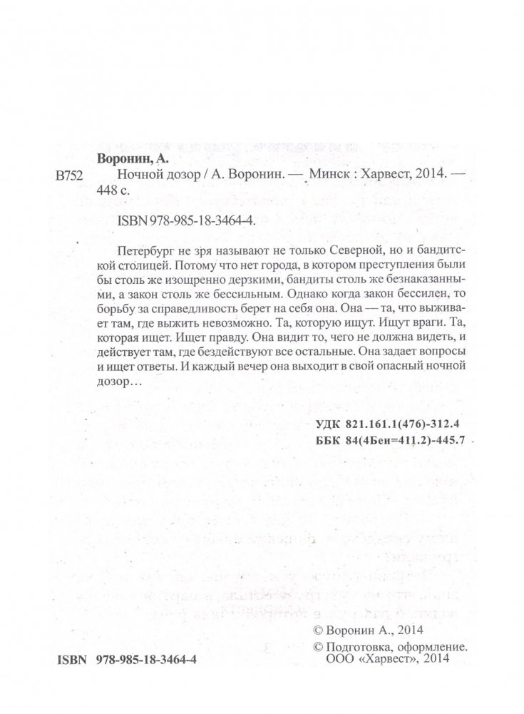 Петербург не зря называют не только Северной, но и бандитской столицей. Потому что нет города, в котором преступления были бы столь же изощренно дерзкими, бандиты столь же безнаказанными, а закон столь же бессильным. Однако когда закон бессилен, то борьбу за справедливость берет на себя она. Она — та, что выживает там, где выжить невозможно. Та, которую ищут. Ищут враги. Та, которая ищет. Ищет правду. Она видит то, чего не должна видеть, и действует там, где бездействуют все остальные. Она задает вопросы и ищет ответы. И каждый вечер она выходит в свой опасный ночной дозор...
