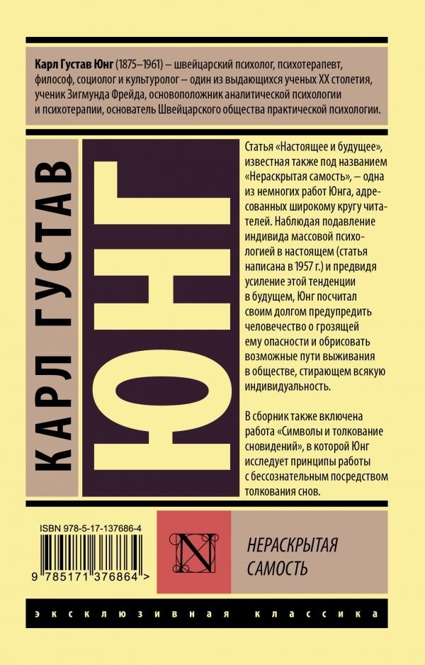 Статья «Настоящее и будущее», известная также под названием «Нераскрытая самость», – одна из немногих работ Юнга, адресованных широкому кругу читателей. Наблюдая подавление индивида массовой психологией в настоящем (статья написана в 1957 г.) и предвидя усиление этой тенденции в будущем, Юнг посчитал своим долгом предупредить человечество о грозящей ему опасности и обрисовать возможные пути выживания в обществе, стирающем всякую индивидуальность.