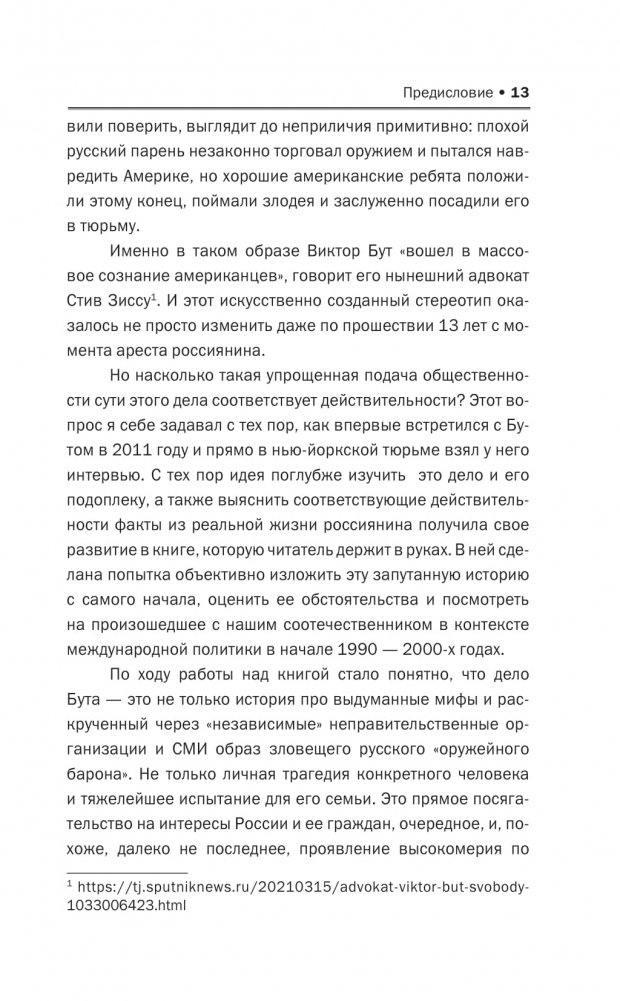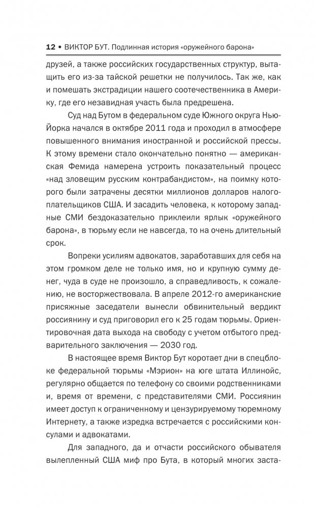Вновь проанализированные факты истинных причин охоты США за В. Бутом, интервью с ним, его родственниками и знакомыми, уникальные фотографии из семейного архива, письма Виктора из тюрьмы и фрагменты дневников его жены Аллы легли в основу журналистского расследования этого резонансного дела, ставшего крупным международным скандалом.