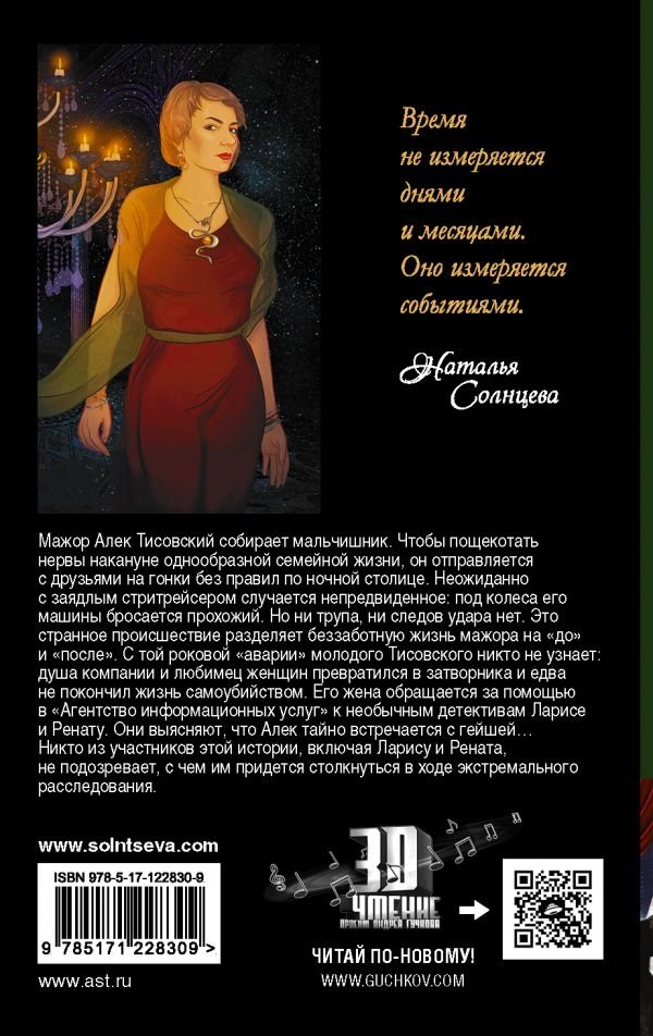 Мажор Алек Тисовский собирает мальчишник. Чтобы пощекотать нервы накануне однообразной семейной жизни, он отправляется с друзьями на гонки без правил по ночной столице. Неожиданно с заядлым стритрейсером случается непредвиденное: под колеса его машины бросается прохожий. Но ни трупа, ни следов удара нет. Это странное происшествие разделяет беззаботную жизнь мажора на "до" и "после". С той роковой "аварии" молодого Тисовского никто не узнает: душа компании и любимец женщин превратился в затворника и едва не покончил жизнь самоубийством. Его жена обращается за помощью в "Агентство информационных услуг" к необычным детективам Ларисе и Ренату. Они выясняют, что Алек тайно встречается с гейшей… Никто из участников этой истории, включая Ларису и Рената, не подозревает, с чем им придётся столкнуться в ходе экстремального расследования.