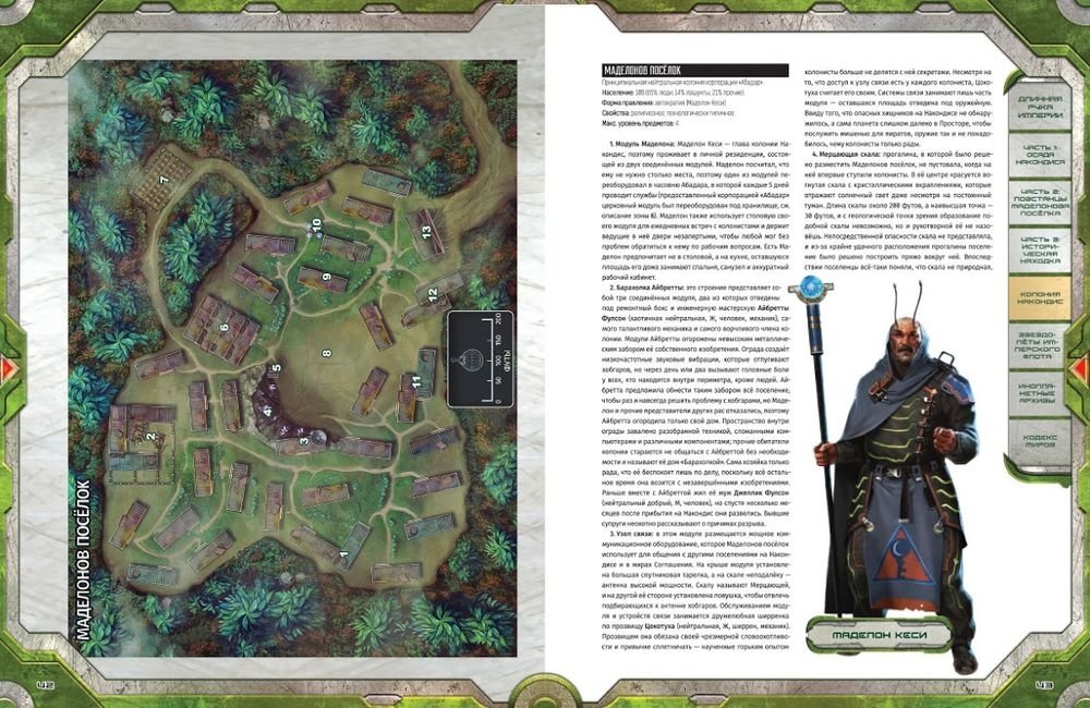 Краткая историческая справка и путеводитель по колонии миров Соглашения на Накондисе и её главному поселению, Маделонову посёлку, а также новая тема колониста для персонажей игроков. Автор: Рон Ландин.
