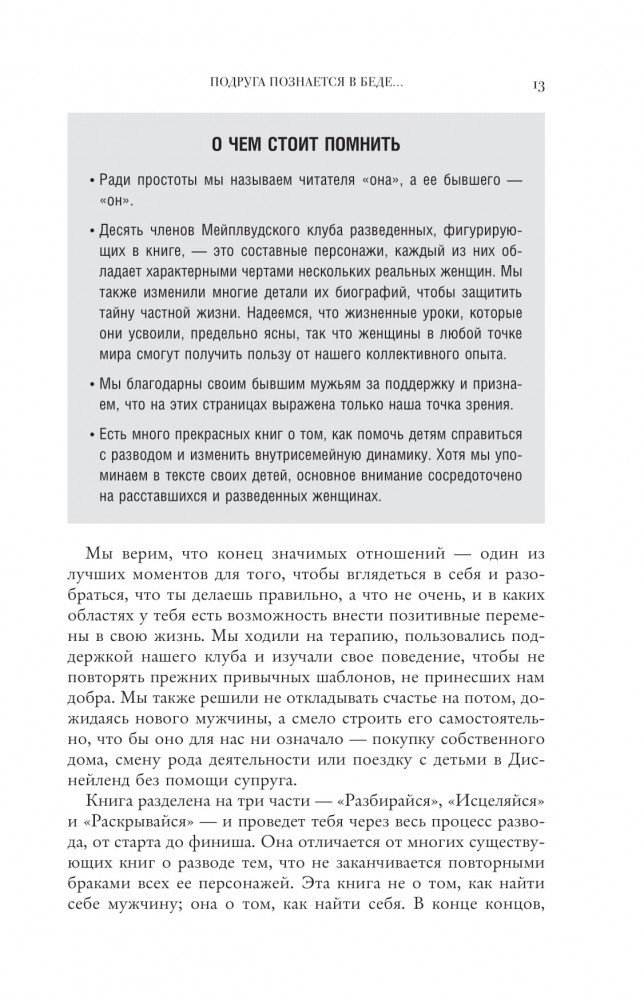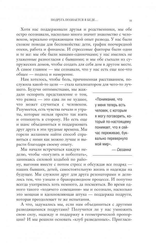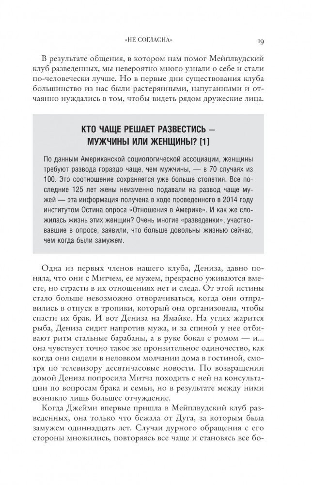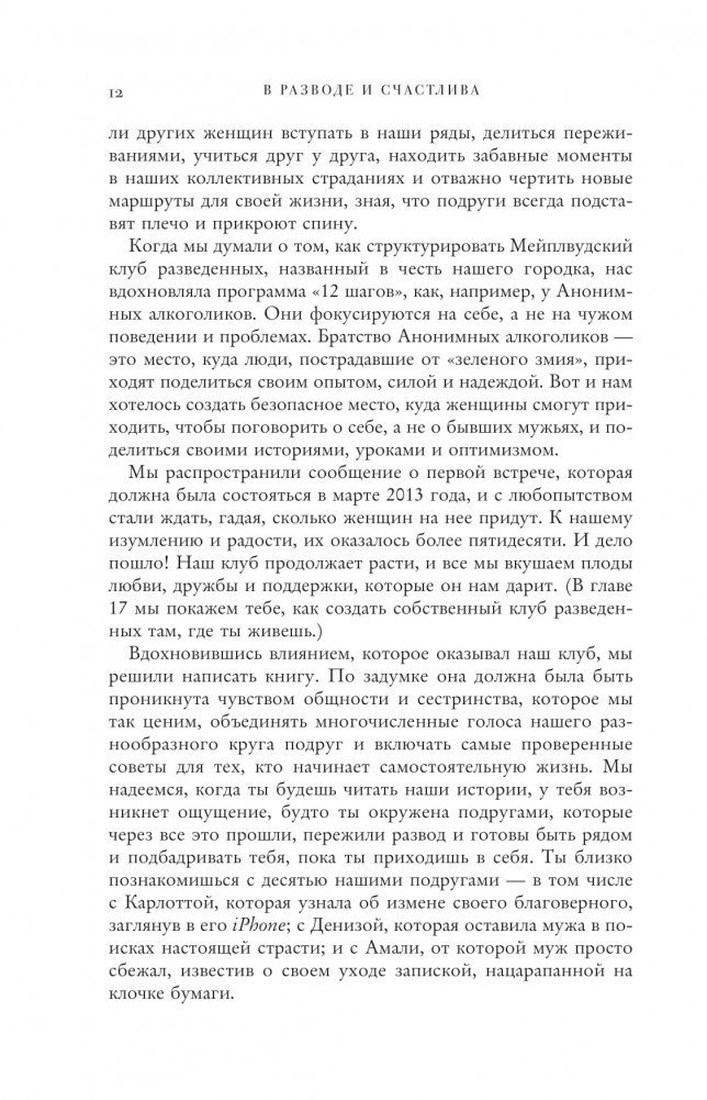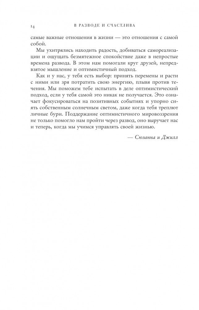 По статистике чаще всего на развод подают женщины. Это тяжелое решение помимо облегчения, приносит также боль, потерянность и одиночество. Героини данной книги тоже прошли через мучительное расставание, но нашли в себе силы жить дальше и стать счастливыми. Внутри вы найдете пошаговый план для начала нового этапа жизни. Узнаете, как поговорить с детьми о расставании, вести переговоры о расторжении брака со своим бывшим, привести финансы в порядок и многое другое. Вы научитесь находить радость, добиваться самореализации и ощущать безмятежное спокойствие даже в непростые времена развода. В издание включены комментарии российского адвоката, Екатерины Калядиной, в которых она разъясняет нюансы бракоразводного процесса в России.