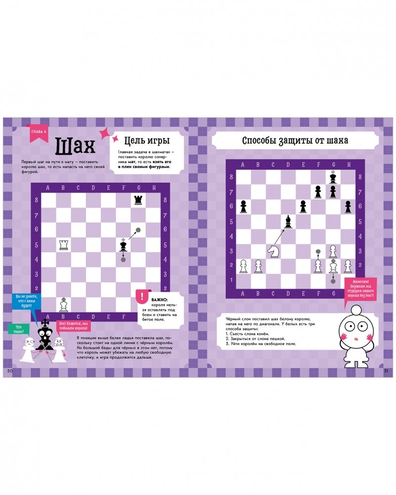 Книга знакомит детей с азами шахматной игры, с тем как правильно начать игру, какие тактики и стратегии лучше применить в середине и конце игры; показывает выигрышные стратегии для нападения и защиты. На страницах этой книги шахматные фигуры оживают и переносят юного ученика в увлекательный и захватывающий мир шахмат.