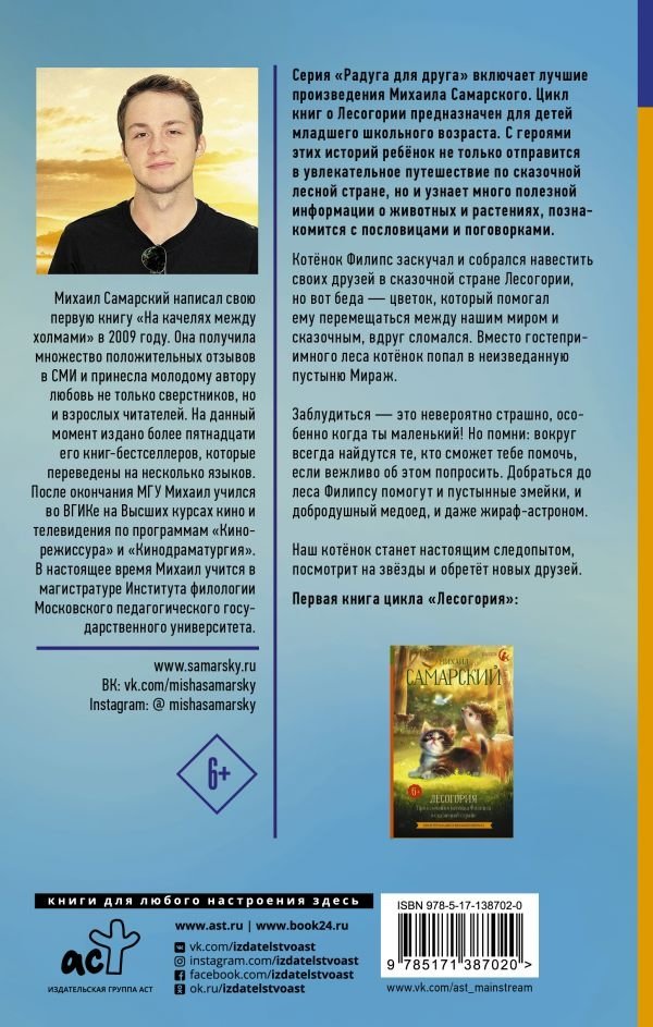 Котёнок Филипс заскучал и собрался навестить своих друзей в сказочной стране Лесогории, но вот беда — цветок, который помогал ему перемещаться между нашим миром и сказочным, вдруг сломался. Вместо гостеприимного леса котёнок попал в неизведанную пустыню Мираж.