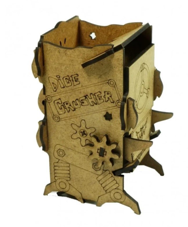 Башня Dice Crusher производится из твёрдой древесноволокнистой плиты HDF. Со всех сторон дайс-тауэр украшен лазерной гравировкой и выступающими подвижными элементами. Чтобы собрать "Сокрушителя", клей не нужен — достаточно входящей в комплект инструкции. Неламинированную версию башни можно расцветить акриловыми модельными красками.