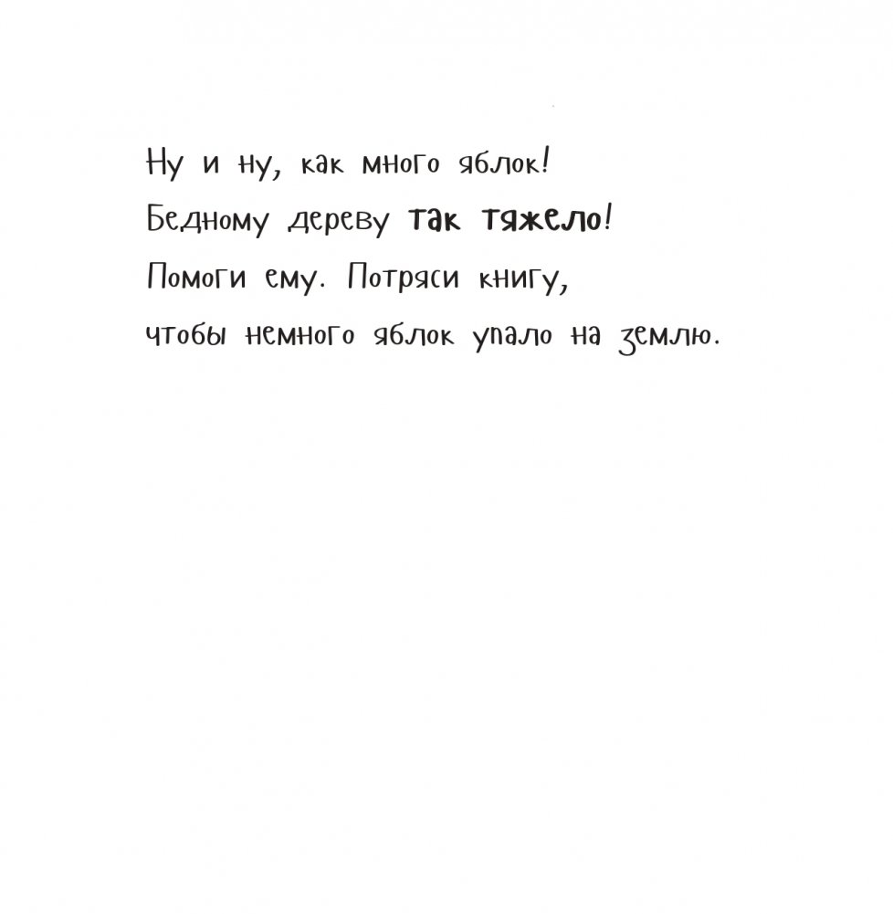 Эта книга-активити приглашает тебя поиграть! Тряси, щекочи и верти её! Стучи, дуй, нажимай! И тогда увидишь, что произойдёт с яблоней, грустным монстром-щекотуней Калле, промокшей кошкой и семейством зайчат.