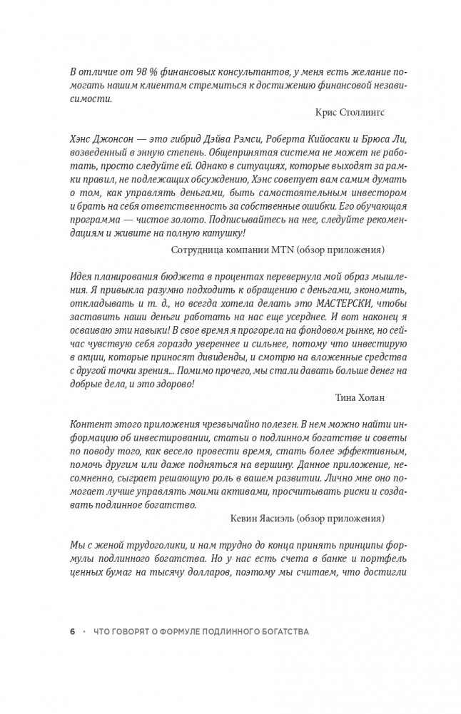 Эта книга предлагает подробный план и пошаговую стратегию, которые помогут вам взять под контроль свои деньги, освоить искусство инвестиционной игры и глубже вникнуть в смысл концепций богатства, отношений, самореализации и наследия. Используя нетрадиционные, но проверенные временем идеи Хэнса Джонсона, вы научитесь просеивать немыслимое количество финансовой информации и разработаете надежную систему, которая обеспечит автоматическое получение желаемых результатов.