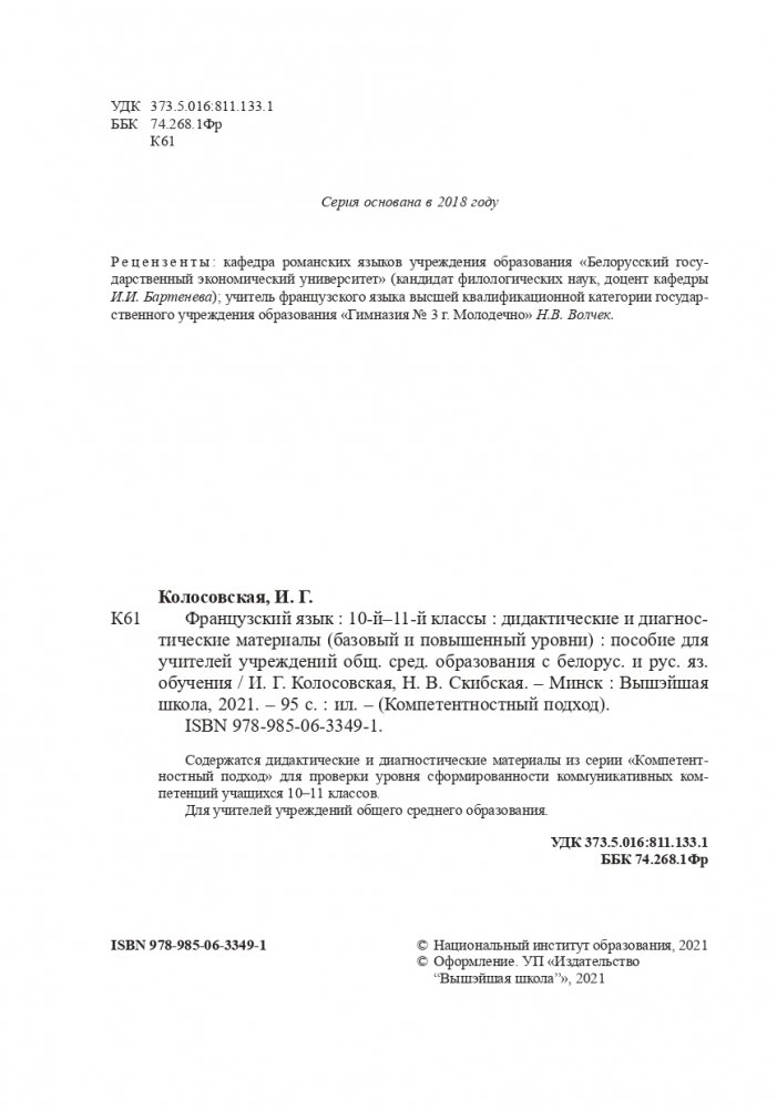Французский язык. 10-11 классы. Дидактические и диагностические материалы