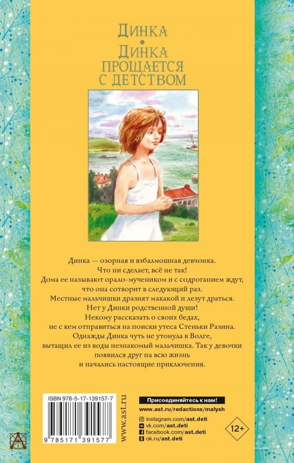 В книгу вошли две повести Валентины Осеевой об озорной и вихрастой девчонке: «Динка» и «Динка прощается с детством». Динка растет в любящей семье, по вечерам они все вместе поют песни, устраивают поэтические вечера, разговаривают. Динкины сестры – послушные девочки, они не уходят без спроса, выполняют все просьбы мамы и тети Кати, а вот Динка – настоящий сорванец! Ее хлебом не корми, дай только убежать и во что-нибудь вляпаться. Да и вокруг столько интересного: нужно спасти ужа, найти на Волге утес Стеньки Разина и обязательно отыскать мальчишку по имени Ленька, которого она нечаянно сильно подвела.