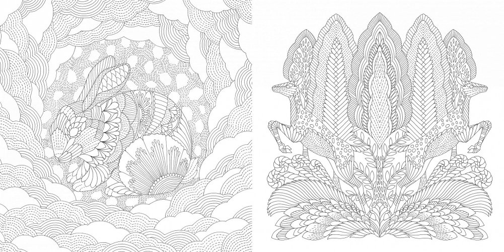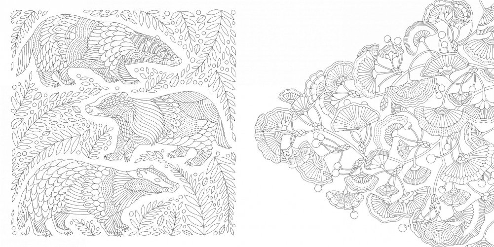 Столь любимый автором витиеватый художественный стиль придется по душе всем, кто обожает раскрашивать. Блуждая среди величественных деревьев, запутанных лиан, изысканных цветов и даже в подземных лабиринтах, вы встретите огромное множество животных, для которых леса являются родным домом. Эта книга – настоящее торжество природы – яркой и изобилующей жизнью.