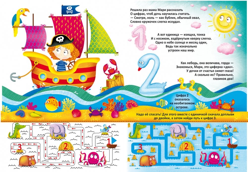 Перед вами удивительная многоразовая раскраска с заданиями! С ней можно почувствовать себя настоящим волшебником. Ведь стоит провести мокрой кисточкой по чистому листу, и он превратится в красочный рисунок. А когда бумага высохнет, изображение исчезнет. Весёлые стишки познакомят с числами до 10, а запомнить их помогут кроссворды, лабиринты, ребусы, ответы на которые скрывают белые листы. Лёгкий взмах волшебной кисточки в руках ребёнка — и подсказка тут же проявится!