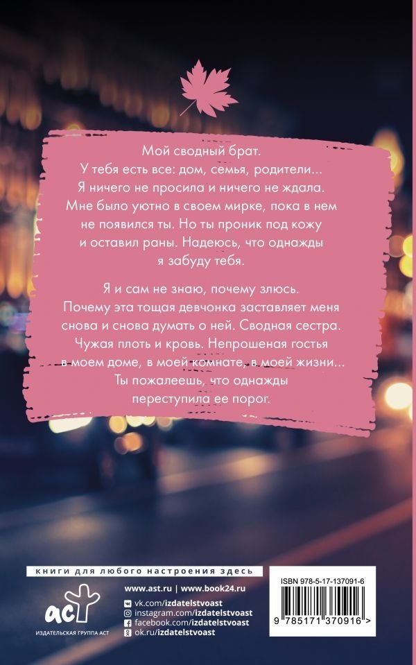Мой сводный брат. У тебя есть все: дом, семья, родители… Я ничего не просила и ничего не ждала. Мне было уютно в своем мирке, пока в нем не появился ты. Но ты проник под кожу и оставил раны.