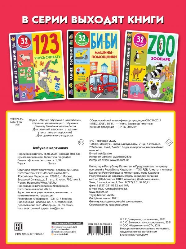 «Азбука в картинках» — красочная книга с наклейками познакомит малыша с буквами русского алфавита. Ребёнок с удовольствием будет искать и подбирать наклейки, приклеивать их в нужное место. Это занятие не только увлекательное, но и очень полезное: развивает воображение, мелкую моторику, усидчивость и внимание, способствует интеллектуальному развитию.