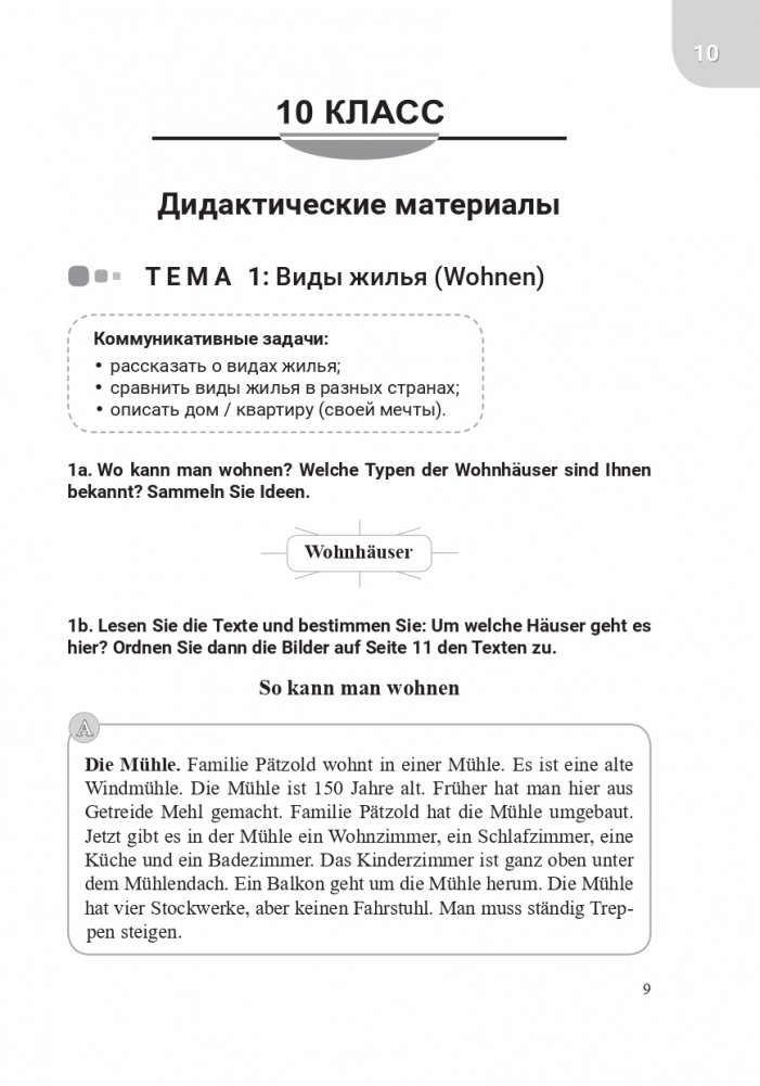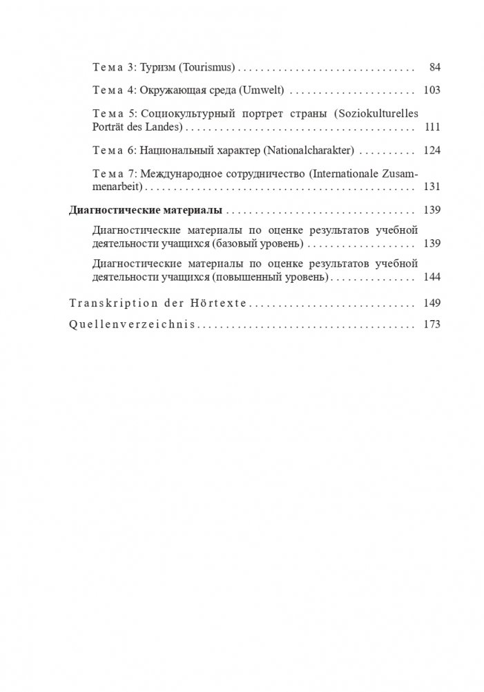 Состоит из дидактических и диагностических (отдельно для базового и повышенного уровней) материалов. Дидактические материалы содержат задания для развития умений устного и письменного общения на немецком языке в соответствии с предметно-тематическим содержанием учебной программы. Диагностические материалы предназначены для осуществления контрольно-оценочной деятельности по четвертям. В конце размещены скрипты текстов для прослушивания. Доступ к аудиозаписям текстов для прослушивания осуществляется через QR-коды, которые открываются с помощью смартфона или планшета.