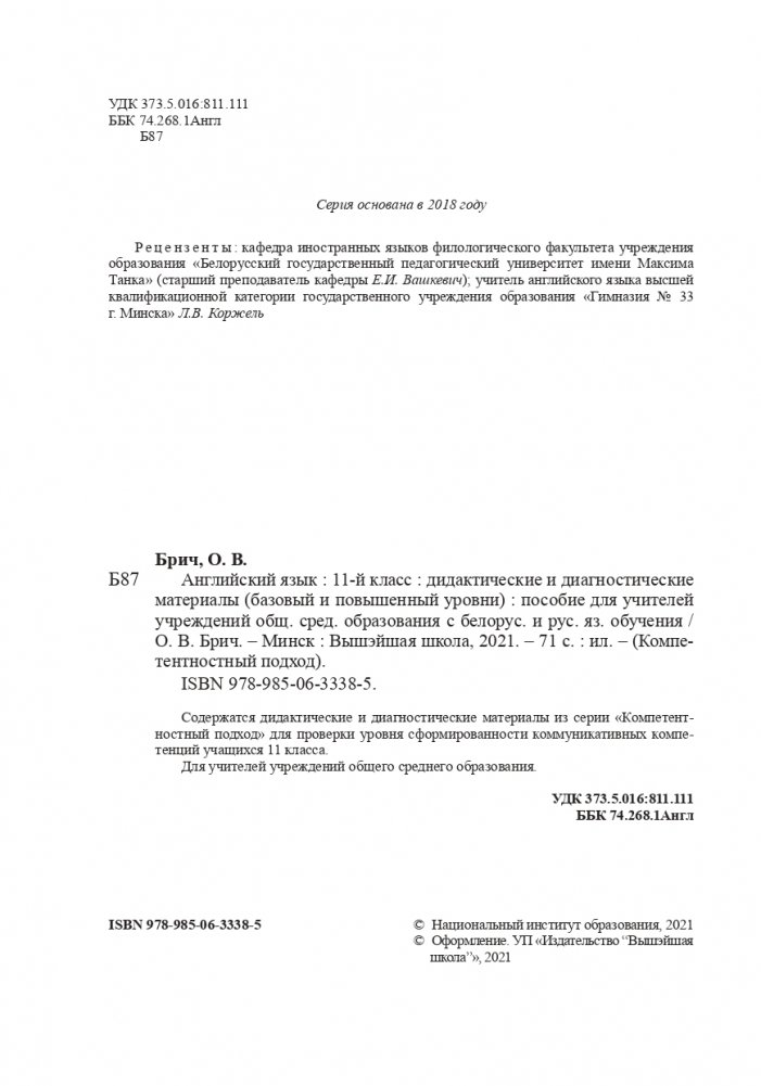 Для учителей английского языка учреждений общего среднего образования с белорусским и русским языками обучения