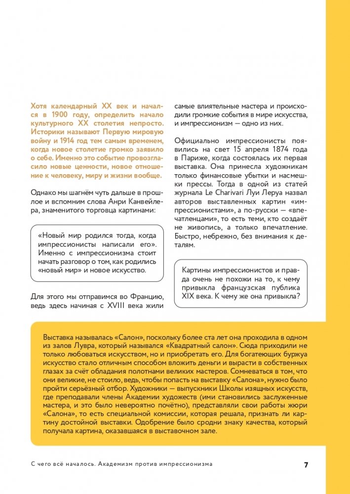 Презираемое и окружённое насмешками, или до крайности интеллектуальное, искусство XX века изменило парадигмы, взорвало коды и избавилось от правил. Прошлый век, отличающийся ускоренной сменой авангардных движений, распространением новых практик, пулом единичных произведений, манифестов и заявлений художников, кажется одним из самых богатых и плодотворных моментов в истории искусства. Чтобы понять все эти изменения, Алина Аксёнова анализирует знаменитые и менее известные работы и привносит новые знания в их восприятие. Ясный и лаконичный язык, логика повествования и убедительная аргументация позволяют считать книгу Алины отличным искусствоведческим анализом XX века. Эта книга, наполненная, прежде всего, точной и достоверной информацией — удобный инструмент, чтобы сделать первые шаги и не потеряться на пути изучения искусства XX века.