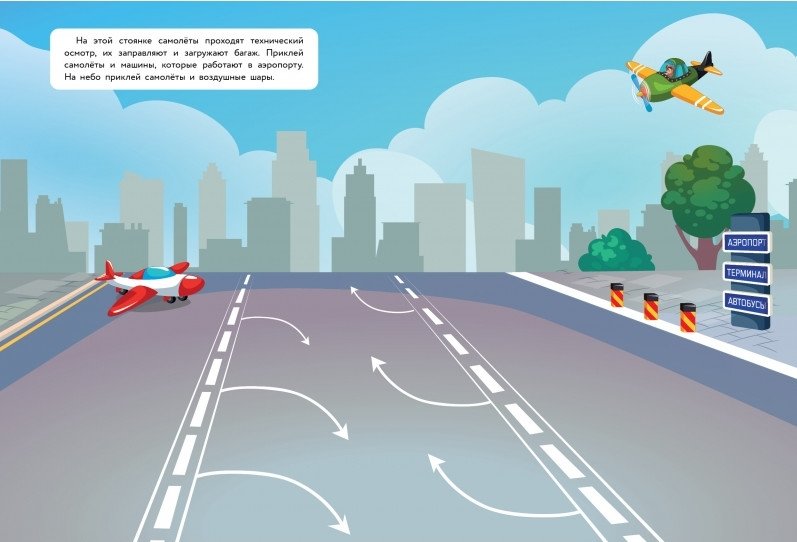 Чтобы узнать, какие бывают самолёты и вертолёты, можно отправиться на экскурсию в аэропорт. Здесь ты познакомишься с разными летательными аппаратами и со спецтехникой, которая их обслуживает. С нашими наклейками это будет очень интересно! Наклейки многоразовые, поэтому можно придумывать разные истории и приклеивать их снова и снова! Весёлые человечки уже собрали чемоданы и ждут тебя. Счастливого пути!