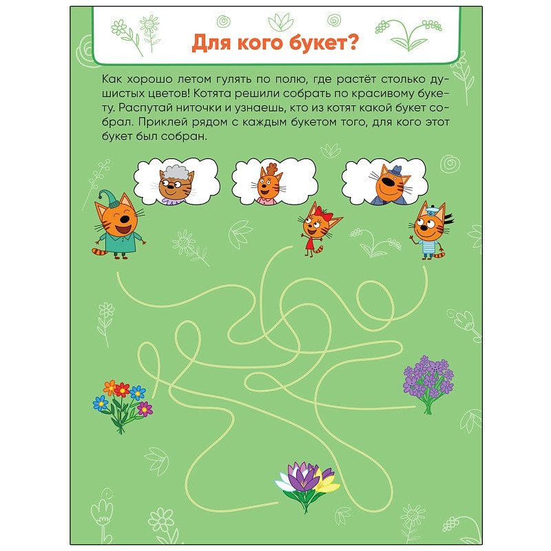 В книге «Времена года» ребенка ждут занимательные лабиринты, посвященные четырем временам года. Это отличный способ расширить представления малыша о сезонных изменениях. А еще на каждой страничке — веселая история про приключения котят и их друзей, а также задание, которое нужно выполнить при помощи наклеек. Проходя лабиринты и приклеивая наклейки, незаметно для себя малыш потренирует внимание, мелкую моторику и мышление. Только вперед! Миу-миу-миу!