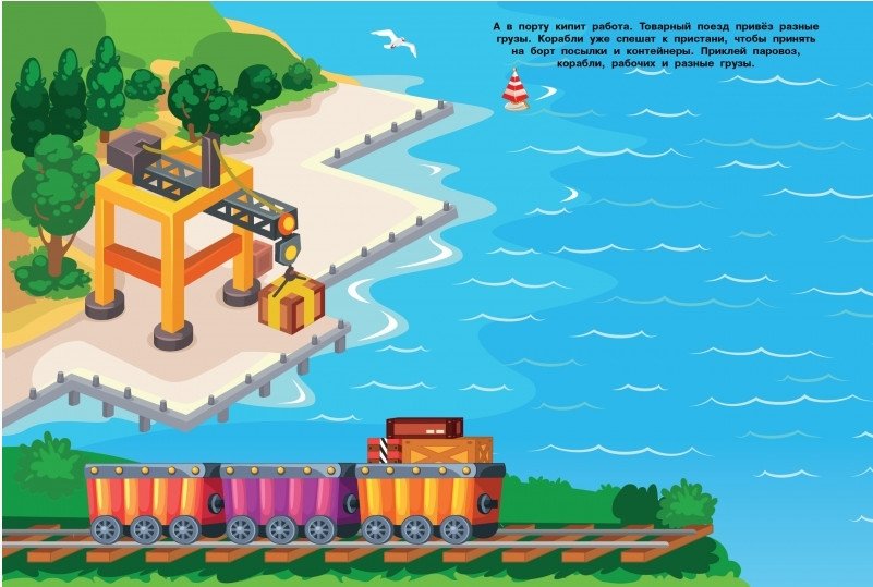 Хочешь узнать, какой бывает водный транспорт? Тогда приглашаем тебя на прогулку по реке. Тут можно увидеть грузовые корабли, яхты, парусники, прогулочные кораблики, катера и лодки. А с нашими наклейками будет еще интереснее. Наклейки многоразовые, поэтому можно придумывать разные истории и приклеивать их снова и снова. Фантазируй и играй!