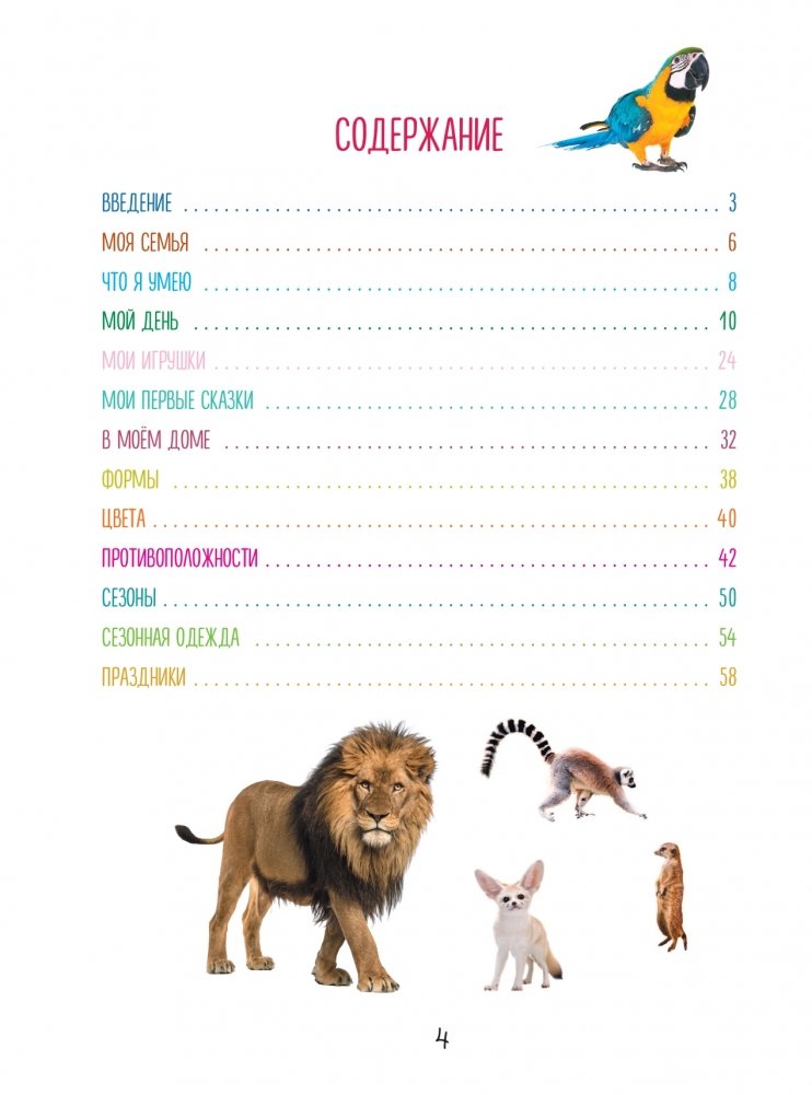 Эта книга – первый путеводитель малыша по окружающему миру. Она поможет родителям развить у малыша ассоциативное мышление, внимательность и умение воспринимать информацию с самого раннего возраста. Большое количество познавательного материала разделено по удобному принципу, который учитывает, что детский кругозор расширяется постепенно – от самого простого к сложному. Наглядные крупные картинки ребёнок сможет рассматривать уже с 3-месячного возраста, а став постарше, освоит по этой книге первые навыки самостоятельного чтения.