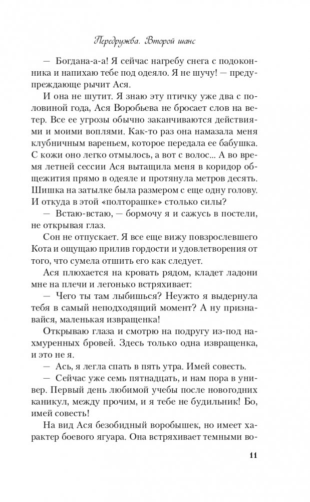 Прошло больше двух лет после окончания школы. За это время Богдана Лисецкая ни разу не пожалела о сделанном выборе. Ее студенческая жизнь наполнена яркими событиями, новые друзья не дают скучать, а старые предусмотрительно не напоминают о прошлом. Пока оно само не стучит в закрытую дверь: это снова он, Богдан — лучший друг и ее первая любовь. Декорации изменились, Кот и Лисенок повзрослели, но они все еще не поняли, что все-таки между ними произошло? Заслуживает ли передружба второго шанса или стоит просто зачеркнуть приставку пере-, оставив лишь... дружбу? Продолжение полюбившейся читателям истории от автора бестселлера «Передружба. Недоотношения» Алекс Хилл! Кот и Лисенок повзрослели, их пути разошлись, они больше не школьные друзья, не пара, у каждого своя жизнь. Внезапная встреча рушит все планы, вскрывает старые раны, чувства вспыхивают с новой силой. Но Богдана Лисецкая не намерена повторять историю. Она хочет идти дальше, не оглядываясь назад. Вот только удастся ли ей это, когда она вновь увидит знакомые серые глаза? Узнаваемое серийное оформление, фирменный авторский слог и неожиданные сюжетные повороты! Героям снова предстоит сделать непростой выбор, остаться собой и не потерять любимых. Эта книга — чудесный подарок для поклонников Аси Лавринович и Лены Сокол!