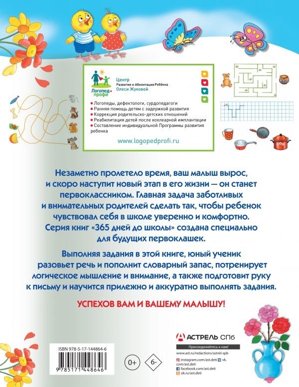 В этой книге вы найдете наиболее эффективные задания для подготовки ребенка к школе. С их помощью будущий первоклассник разовьет речь и пополнит словарный запас, потренирует логическое мышление и внимание, а также подготовит руку к письму и научится прилежно и аккуратно выполнять задания. Для дошкольного возраста.
