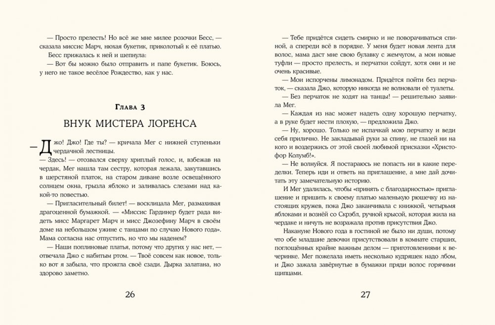 Какие же разные в семействе Марч растут девочки! Послушная, но немного тщеславная красавица Мег, честная и прямолинейная фантазёрка Джо, робкая и застенчивая любительница музыки Бесс, ещё по-детски обидчивая и капризная Эми. Каждой из них чего-то в жизни не хватает. Мег угнетает бедность семьи, Джо — личная несвобода, Бесс — отсутствие пианино, Эми — её нос и уроки… Впереди у девочек трудный год: в Америке идёт Гражданская война, их отец, полковой священник, вдали от дома поддерживает боевой дух солдат-северян, и многие заботы по дому легли на плечи «маленьких женщин» Марч. Но именно этот год позволит сёстрам понять, что, в сущности, у них уже есть всё, чтобы быть счастливыми.