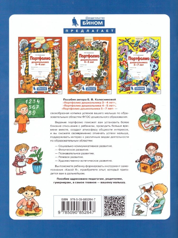 Данное портфолио - это своеобразная копилка успехов вашего малыша по основным направлениям его развития. Критерии, которые представлены в примерных основных общеобразовательных программах "Истоки" (М., 2011), "От рождения до школы" (М., 2010), переработаны в соответствии с Федеральными государственными требованиями к обязательным общеобразовательным программам для дошкольных учреждений.