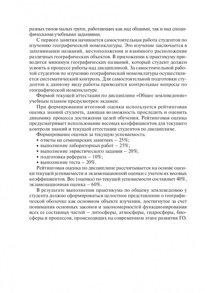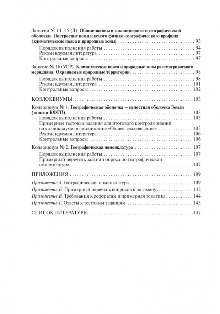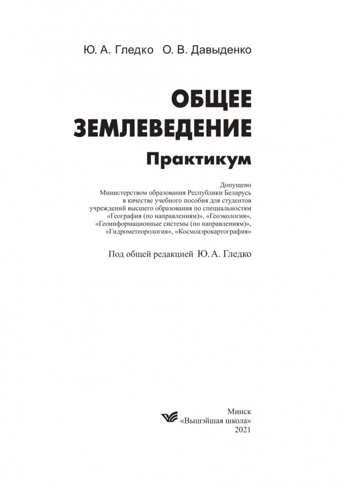 Представлены практические занятия по темам, предусмотренным учебной программой дисциплины «Общее землеведение». Включает задания для проведения лабораторных работ, перечень вопросов и заданий для семинарских занятий, открытые эвристические задания для управляемой самостоятельной работы студентов, минимум географической номенклатуры, примерный перечень заданий в тестовой форме для итогового и промежуточного контроля знаний. Для каждого задания указаны исходные материалы, описан порядок выполнения и приводятся методические рекомендации по выполнению и оформлению работы. В конце пособия приводится перечень учебно-методической литературы, научных изданий, атласов, необходимых для успешного выполнения заданий.