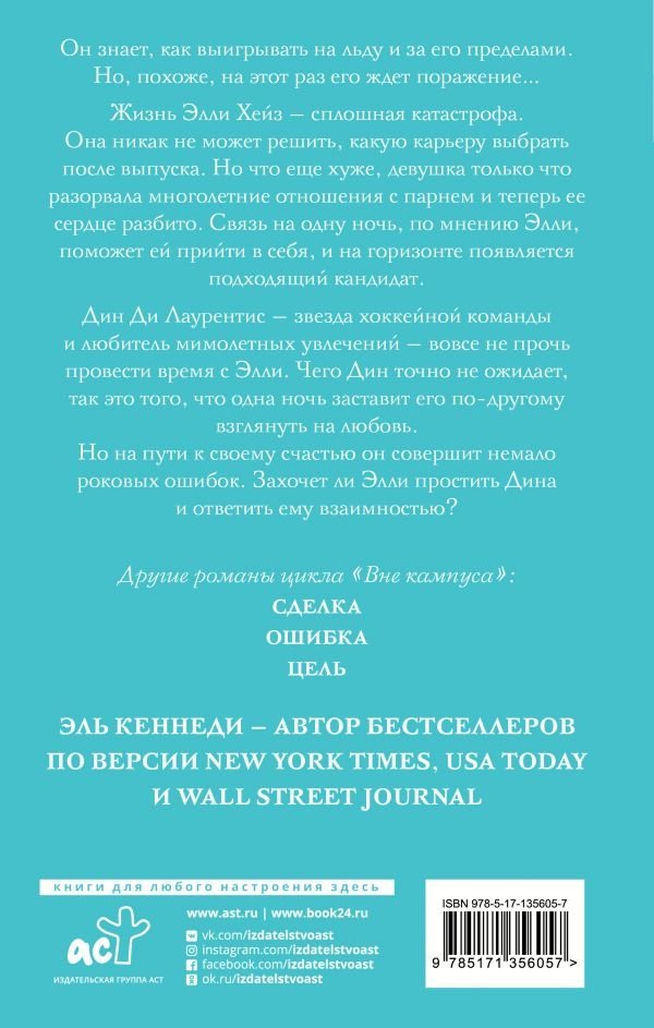 Дин Ди Лаурентис — звезда хоккейной команды и любитель мимолетных увлечений — вовсе не прочь провести время с Элли. Но чего Дин точно не ожидает, так это того, что одна ночь заставит его по-другому взглянуть на любовь. Но на пути к своему счастью он совершит немало роковых ошибок. Захочет ли Элли простить Дина и ответить ему взаимностью?