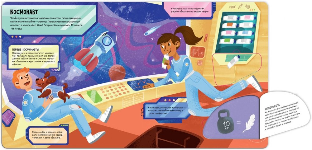 Играя с этой книгой, малыш узнает, как живут космонавты на орбите, и познакомится с космическими аппаратами, которые помогают нам изучать космос.