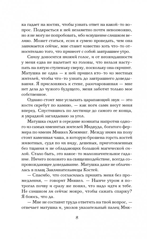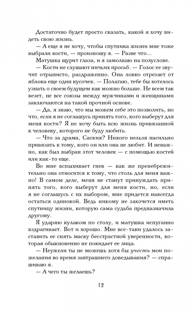 В мире Саскии кости – это источник особой силы. Они могут предсказывать будущее, рассказывать о прошлом, шептать тайны настоящего. Провидцы и гадатели, читающие по костям, есть в каждой деревне. Их уважают и одновременно боятся. Однажды и Саскии придется принять древний дар и стать одним из них, но она противится зову костей, потому что знает – случится что-то непоправимое. Зло рядом, она чувствует его.