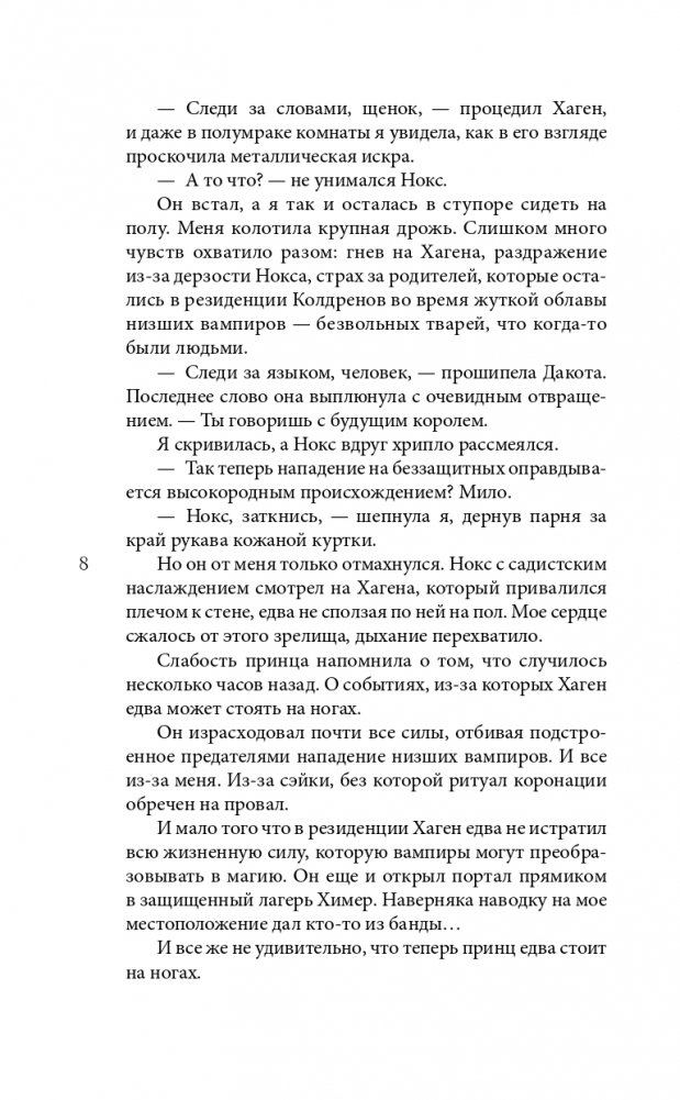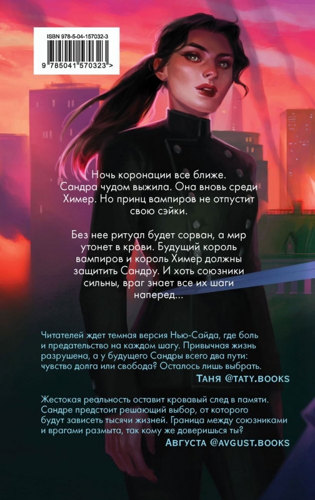 Ночь коронации все ближе. После жестокой бойни в резиденции Сандре чудом удается выжить. Она вновь находит приют среди Химер. Но принц вампиров не отпустит свою сэйки. Он, следуя за Сандрой, является в лагерь банды Нокса. Теперь будущему королю вампиров и королю Химер нужно защитить девушку, без которой ритуал будет сорван, а мир утонет в крови. И хоть союзники Сандры сильны, враг знает все их шаги наперед…