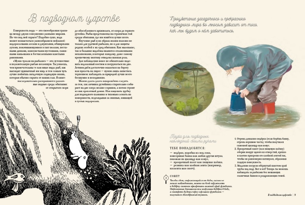 В книге собраны полезные факты и рисунки почти сотни рыб, обитающих в Северной Европе, проиллюстрированные чёрно-белыми рисунками Туве Янссон.