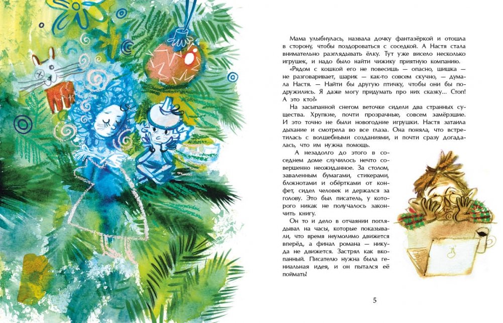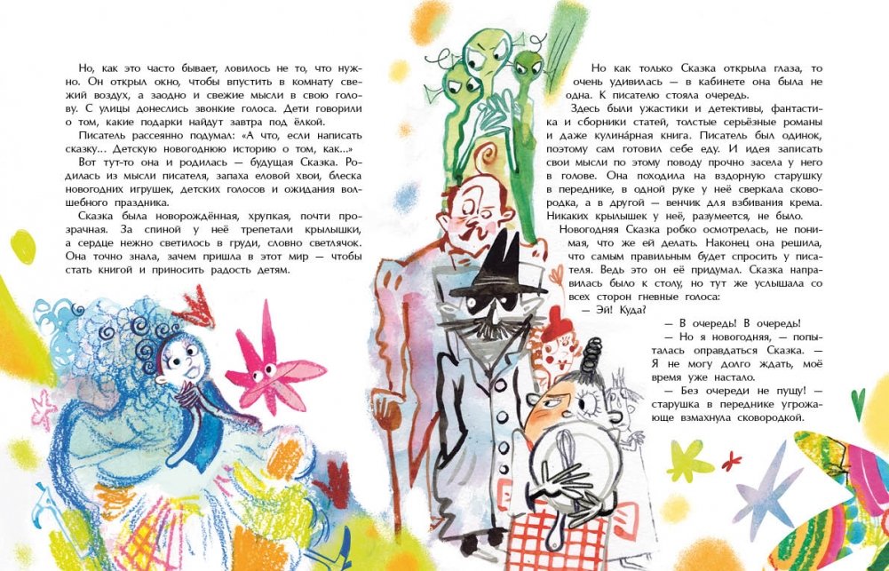 Сказка должна была превратиться в книгу с картинками и радовать детей. Но оказалось, что у писателя, который её придумал, очень много других дел: в очереди ждут детектив, фантастический роман и даже кулинарная книга. А если новогоднюю сказку не записать, ей придётся вернуться в мир идей и надолго затеряться там. Получится ли у сказки найти того, кто поможет ей стать настоящей книгой?