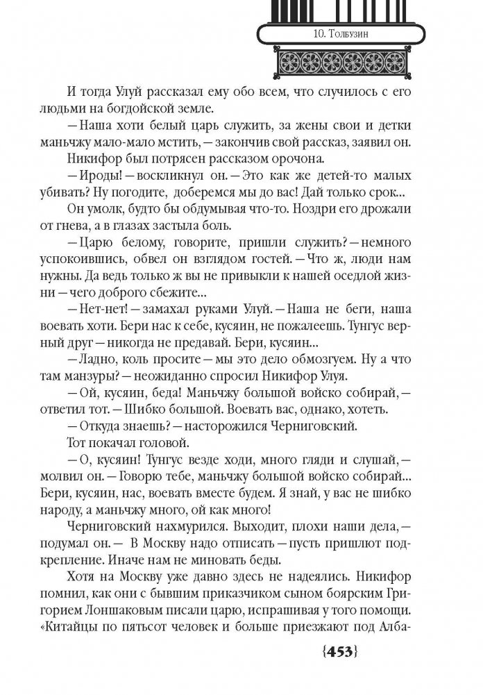 Захватывающий роман повествует о героической обороне первого русского укрепленного поселения на Амуре. Албазинский острог был основан в середине XVII века гонимыми на восток в поисках вольной жизни русскими людьми - беглыми казаками, среди которых были участники восстания Степана Разина, разного рода авантюристами, бедными земледельцами. Царские власти, дабы не портить отношений с соседним Китаем, тоже претендовавшим на эти земли, долгое время не признавали Албазин, однако его обитатели продолжали считать себя подданными России, отсылали в центр пушную дань и отважно обороняли крепость от многократно превосходящих сил грозного соседа. Увы, в 1689 году Московское государство и Цинская Империя заключили Нерчинский договор, по которому русские должны вынуждены были оставить приамурские земли...