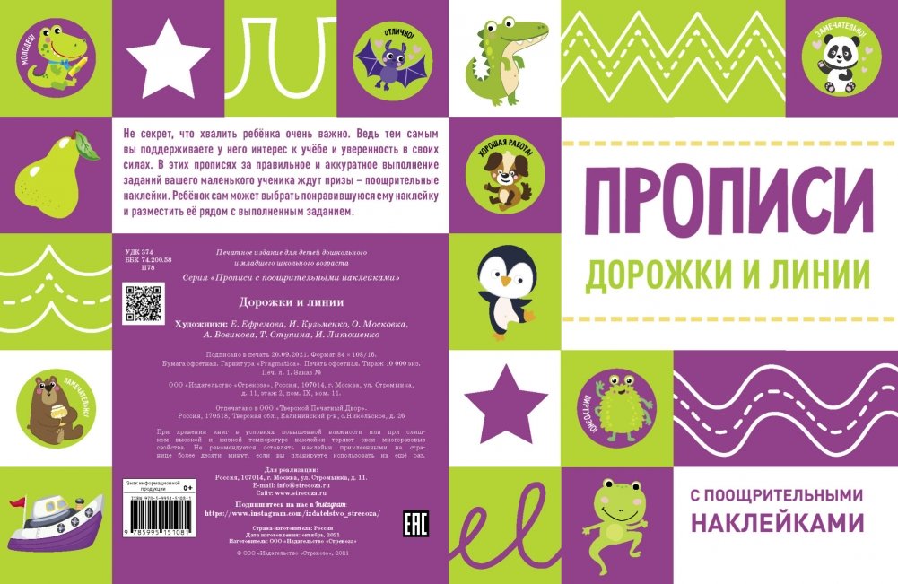 Не секрет, что хвалить ребёнка очень важно. Ведь тем самым вы поддерживаете у него интерес к учёбе и уверенность в своих силах. В этих прописях за правильное и аккуратное выполнение заданий вашего маленького ученика ждут призы - поощрительные наклейки. Ребёнок сам может выбрать понравившуюся ему наклейку и разместить её рядом с выполненным заданием.