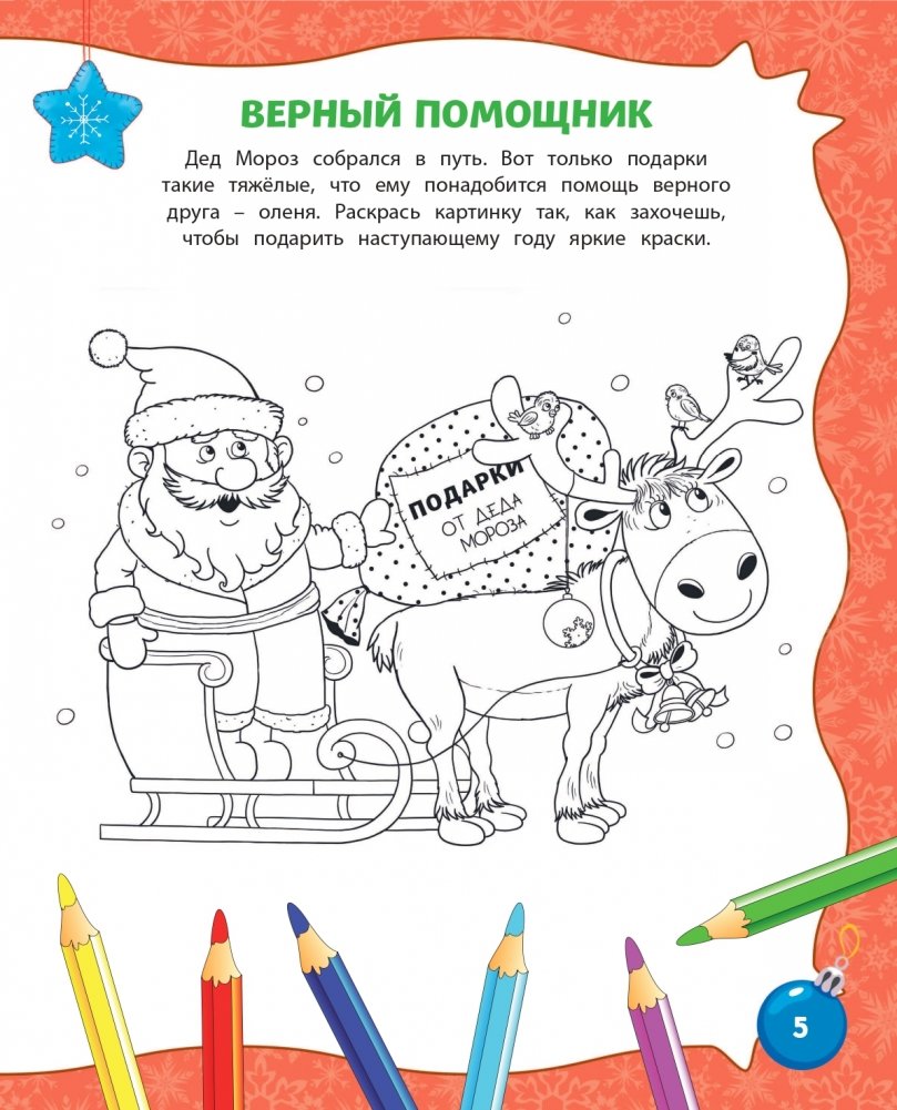 Ну что за чудесная зимняя пора! Днем можно до красных щек и потерянных варежек играть на морозе, а вечером уютно устроиться дома с книгой игр и наклеек. Когда за окном стужа или сквозь темень зимней ночи хлопьями валит снег, наполните свой вечер теплыми и очень добрыми зимними головоломками. Вас ждут лабиринты в гирлянде огоньков, отличия с запахом мандаринов, раскраски на еловых ветках, уютные счёты под тёплым пледом, поиск пар в мишуре, пазлы из пряников, находилки с ароматом корицы и много других увлекательных заданий. Не скучайте зимними вечерами! А чтобы вам стало еще веселее, мы дарим целый мешок наклеек, часть из которых пригодится для заданий, а часть можно клеить куда угодно! Наполните зимним настроением свой дом — решайте игры и головоломки, припорошенные снегом, и наполните комнаты праздничными наклейками.