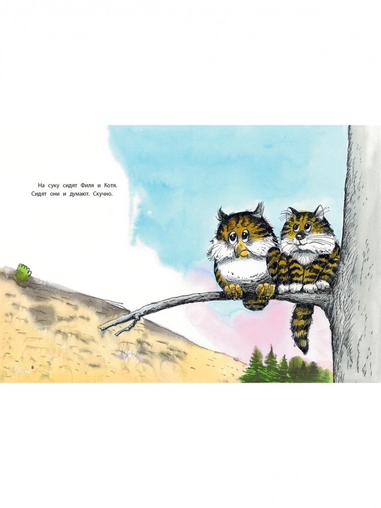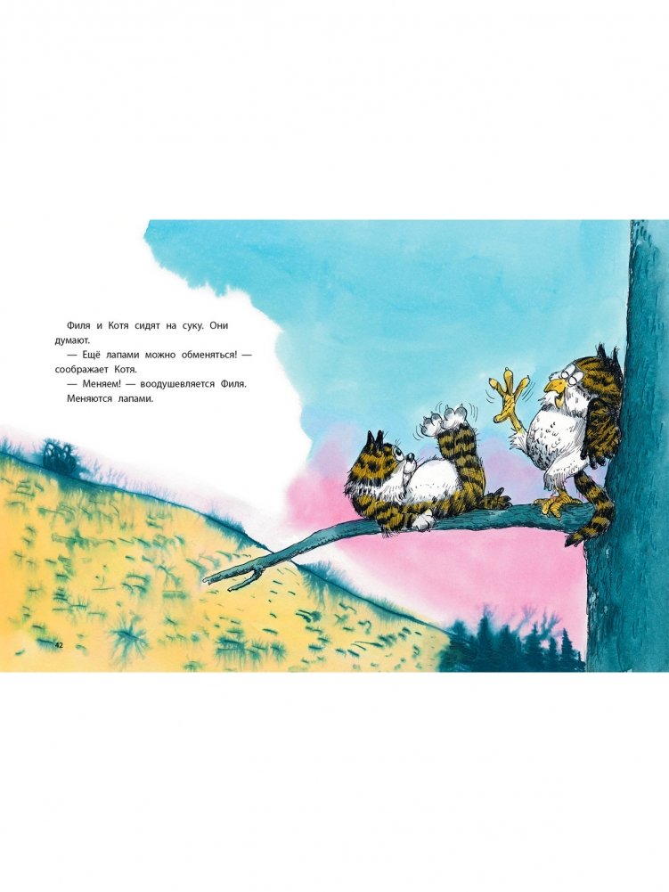 Маленькие филин Филя и котёнок Котя заскучали. Чем бы им заняться таким интересным? Меняться! Они поменялись сначала глазами, потом носами, потом лапами. Что же из этого получилось? Весёлая и поучительная история замечательного эстонского сказочника и художника Эдгара Вальтера расскажет о том, что заранее подумать бывает очень полезно.