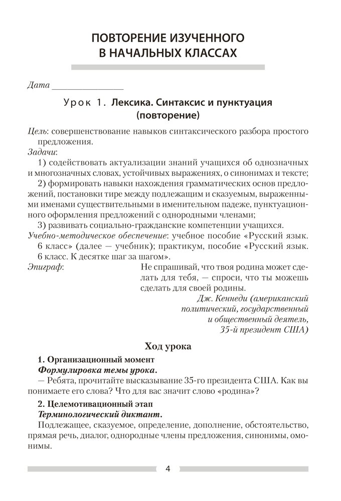 Русский язык. План-конспект уроков. 6 класс