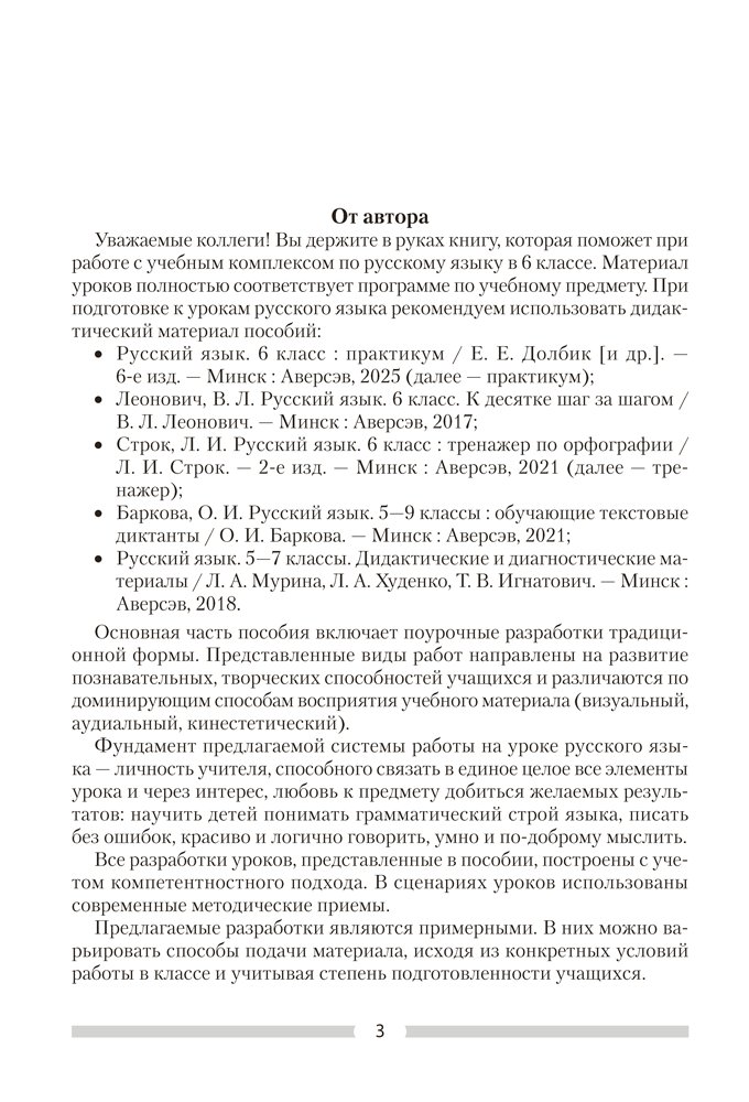 Пособие содержит методические разработки уроков русского языка для 6 класса, которые соответствуют учебной программе. Представленный материал поможет педагогам в организации и проведении занятий.