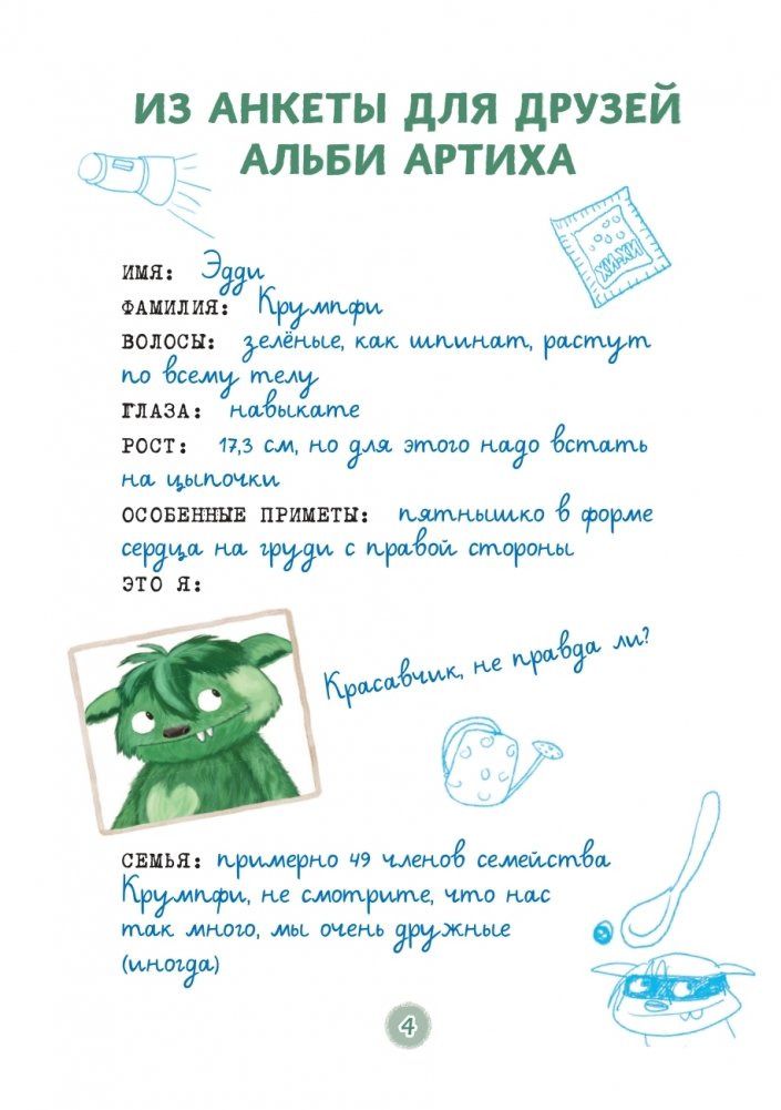 Если вы слышите странные звуки, если всё валится из рук, если вещи оказываются не на своих местах, возможно, в вашем подвале поселилось семейство троллей Крумпфи. Вы любите чай? Тролли его просто обожают. Правда, их чай необычный: он сделан из человеческих обидных слов. Бабушка-тролль тщательно высушивает такие слова, а потом дробит на чаинки. Поэтому тролли радуются, когда кто-то ругается. И если вдруг попадётся доброжелательная семья, они сделают всё, чтобы люди поссорились. И только один маленький тролль с пятнышком в виде сердца не умеет быть злым и вредным. Заваривайте чай, устраивайтесь поудобнее и давайте знакомиться с троллем Эдди и его друзьями. В подвале переполох. Живущие там Крумпфи-тролли узнали, что в дом въезжают новые люди. А значит, будет много ссор и обидных слов. Но не тут-то было — в семье Артихов все очень вежливые. К счастью, тролли умеют рассердить даже самых воспитанных людей. Маленький тролль Эдди вызывается подняться к людям и устроить им неприятности. И у него получается! Только вот теперь Артихи хотят продать дом, а этого никак нельзя допустить. Придумала Крумпфи-троллей Аннет Рёдер, известный немецкий автор. На написание историй о троллях Аннет вдохновили её трое детей. А иллюстратор детских книг Барбара Кортуэс подарила героям выразительную внешность. Серия «Приключения Крумпфи-троллей» состоит из 11 книг, в каждой из которых поднимается серьёзная и актуальная тема: от благополучия в семье до буллинга в школе, при этом подача мягкая, приправленная добрыми шутками. Красочные иллюстрации, удобный формат и крупный шрифт помогут детям младшего школьного возраста полюбить чтение.