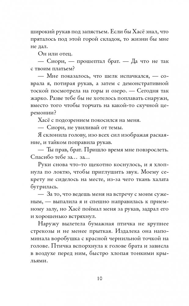Сиори - первая дочь императора и любимая принцесса Кияты, королевства. По ее венам течет запретная магия, что считается редким, но опасным даром. Когда Сиори потеряла контроль над магией, жестокая мачеха изгнала принцессу из королевства, а ее братьев превратила в журавлей. Безмолвная и одинокая Сиори пытается разыскать братьев и спасти королевство, окутанное заговором. Но для этого она должна довериться дракону, со сверкающими рубиновыми глазами и зеленой, как чистейший нефрит, чешуей, а также тому, от кого она так стремительно бежала.