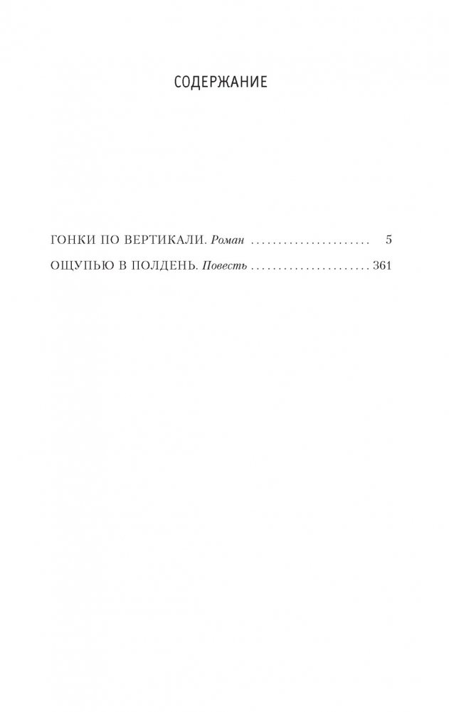 «Гонки по вертикали» (1974) — одно из самых известных произведений братьев Вайнеров. И в то же время — почти неизвестное: будучи экранизирован, роман оказался отчасти заслонен одноименным фильмом (1982), в котором сыграли такие популярные актеры, как Андрей Мягков и Валентин Гафт. В фильме сохранилась главным образом внешняя фабула: история противостояния следователя Стаса Тихонова и вора Лехи Дедушкина по кличке Батон. Борьба справедливости с беззаконием, трудолюбия с тунеядством, добра со злом...