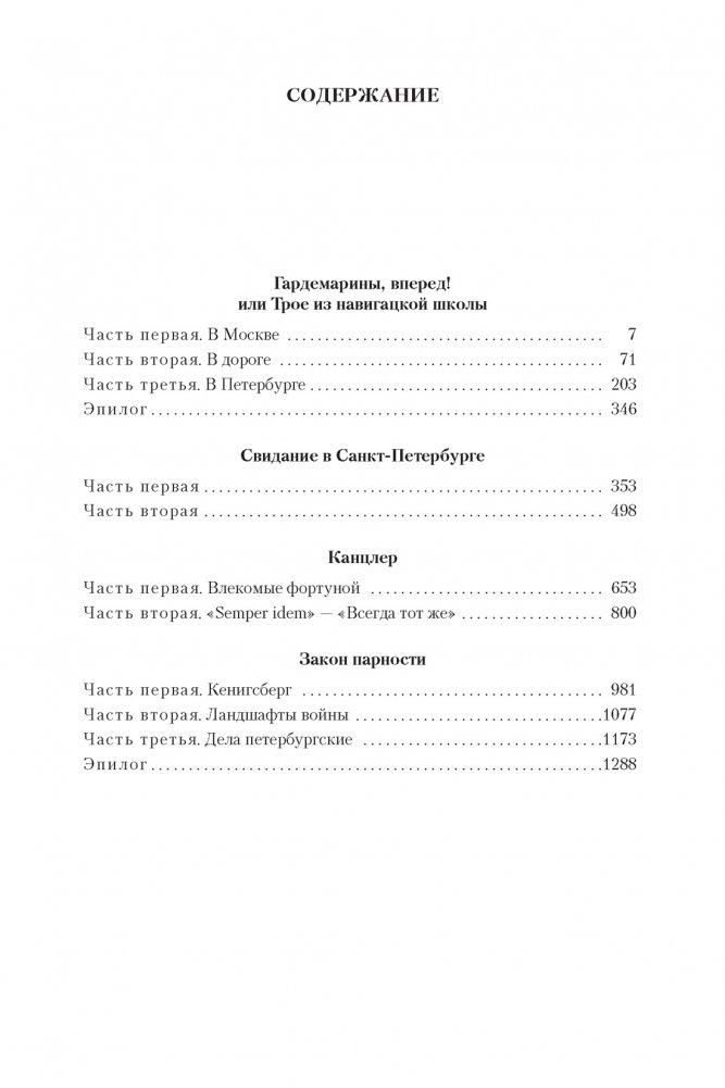 Россия, XVIII век. Трое воспитанников навигацкой школы — Александр Белов, Алеша Корсак и Никита Оленев — по стечению обстоятельств оказались вовлечены в дела государственной важности. На карту поставлено многое: и жизнь, и любовь, и честь российской короны. Друзья мечтали о приключениях и славе, и вот теперь им на деле предстоит испытать себя и сыграть в опасную игру с великими мира сего, окунувшись в пучину дворцовых интриг и политических заговоров. И какие бы испытания ни посылала им судьба, гардемарины всегда остаются верны дружбе и следуют своему главному девизу: «Жизнь Родине, честь — никому!» Захватывающий сюжет, полный опасных приключений и неожиданных поворотов, разворачивается на фоне одной из самых интересных эпох российской истории, во времена правления императрицы Елизаветы, дочери Петра Великого. В 1988–1992 гг. романы о гардемаринах были экранизированы Светланой Дружининой и имели оглушительный успех, а «русские мушкетеры» Дмитрий Харатьян, Сергей Жигунов и Владимир Шевельков снискали всеобщую любовь зрителей. В настоящем издании цикл романов о гардемаринах Нины Соротокиной представлен в полном объеме и включает «Гардемарины, вперед! или Трое из навигацкой школы», «Свидание в Санкт-Петербурге», «Канцлер», «Закон парности».